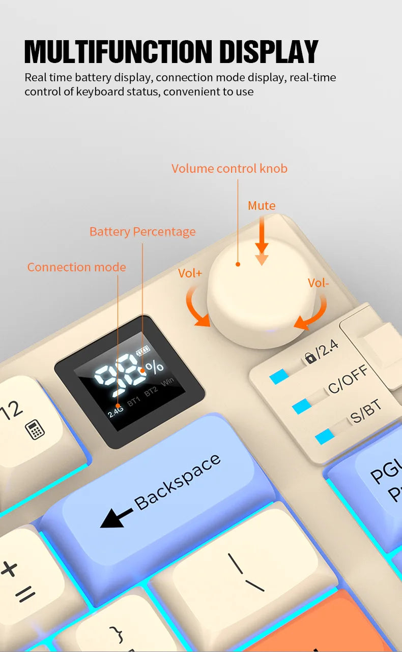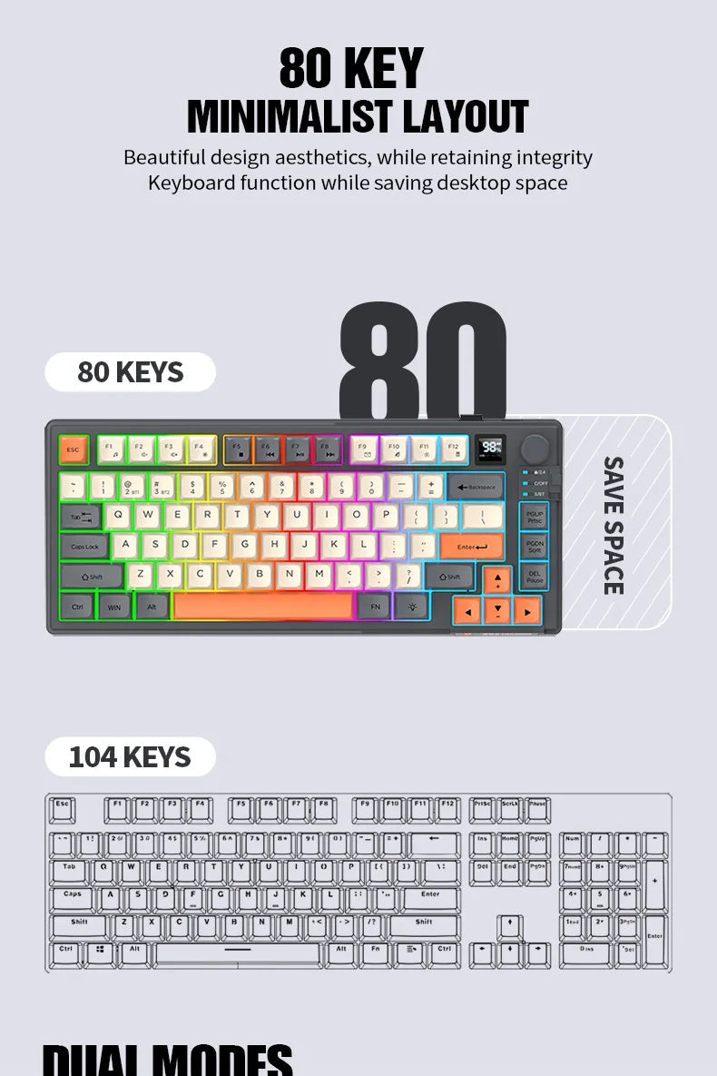 Wireless Keyboard 80 Key 80% Layout Spanish Russian Arabic Korean Keyboard Mouse Set Bluetooth 2.4G 2000mAh Type C K92 Backlight